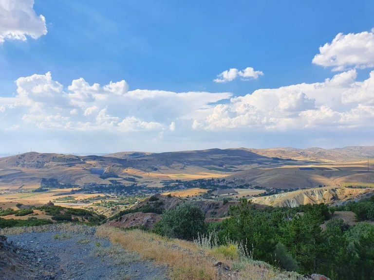 (3) Dopo Dikmen (il Konak della tappa precedente), si sale subito su un rilievo montuoso che si affaccia sulla grande pianura. Si riferisce quasi certamente al Lago Eymir o, più probabilmente, al Lago Mogan (che si trovano entrambi nella zona di Gölbaşı, appena a sud di Ankara). Dopo i laghi, la strada storica si inerpica attraverso le ultime colline prima di raggiungere l’altopiano. La “erta vetta” era l’ultimo grande ostacolo prima di vedere la meta successiva.