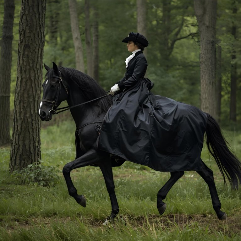 A Port-Marly, la grande distrazione erano le passeggiate a cavallo, e spesso Laprade accompagnava la principessa nelle sue corse attraverso i boschi di Saint-Germain; egli l’ammirava, montata su uno stallone arabo nero, avvolta in un’ampia amazzone di raso nero, aperta su una camicia d’uomo con jabot, coperta da una berretta nera: la si sarebbe detta, quando galoppava, un’apparizione fantastica, con la sua vita sottile e flessibile, un po’ curva, che scivolava nei sentieri stretti della foresta.